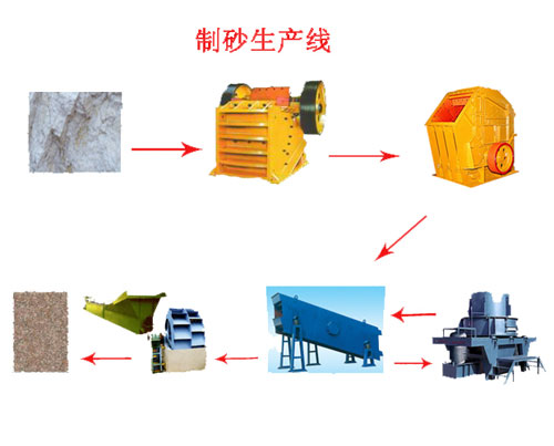 制砂生產(chǎn)線有振動(dòng)給料機(jī)、顎式破碎機(jī)、制砂機(jī)、振動(dòng)篩和膠帶傳輸機(jī)等設(shè)備組合而成。根據(jù)不同的工藝要求,各種型號(hào)的設(shè)備進(jìn)行組合,滿足客戶的不同工藝要求。